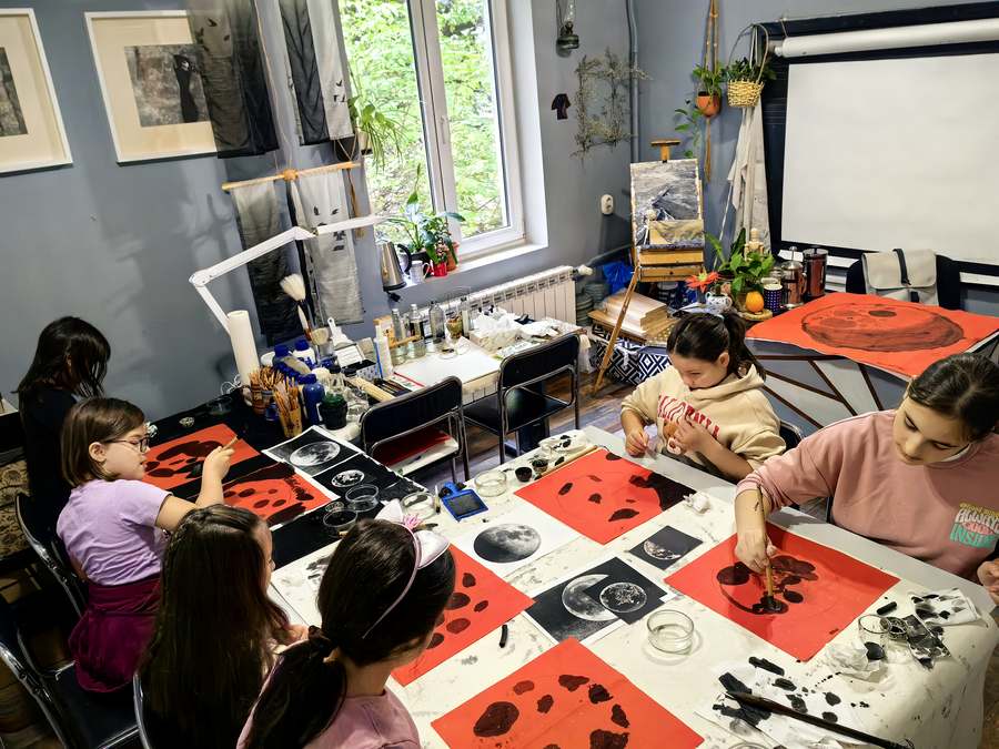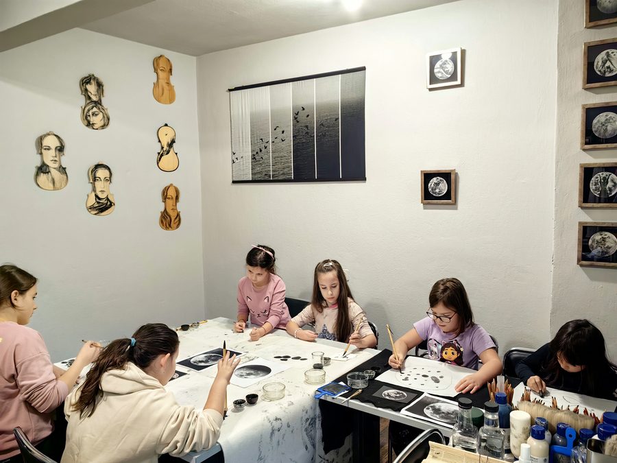Тази вдъхновяваща поредица от работилници по калиграфия беше специално разработена за деца от читалище Средец - 1926 в София. Под ръководството на художничката Михаела Михайлова, известна още като Миша Мар, участниците се запознаха с основите на класическата и съвременната калиграфия, както и с експресивното изкуство суми-е. Чрез практически демонстрации децата изследваха различни материали и инструменти, усвояваха движения с четка и експериментираха с композицията и техниките на нанасяне на туш. Всеки участник създаде собствено произведение, изобразяващо различна фаза на Луната, съчетавайки традиции и съвременност чрез работа с калиграфски туш върху бяла и червена хартия.