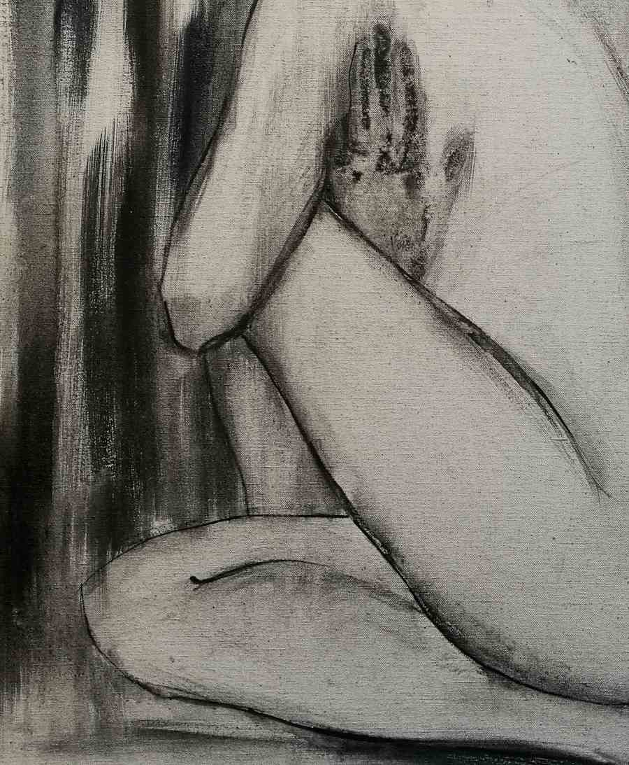 Liquid charcoal drawing on raw 3D canvas.